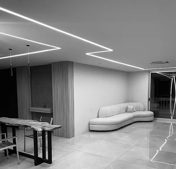 نورپردازی مدرن سالهاست که از یک جزئیات تزئینی ساده عبور کرده و به یکی از کلیدیترین بخشهای معماری داخلی تبدیل شده است. در میان گزینههای مختلف روشنایی، لاین نوری جایگاه ویژهای پیدا کرده؛ اما چیزی که این خطوط نورانی را تبدیل به یک سیستم دقیق، یکنواخت و حرفهای میکند، پروفیل لاین نوری است. این پروفیلها نه تنها نقش سازهای دارند، بلکه کیفیت، طول عمر و زیبایی خط نور را تضمین میکنند. بدون استفاده از پروفیل، دستیابی به نور یکنواخت، اجرای تمیز و جلوگیری از آسیبهای حرارتی تقریباً غیرممکن است. در این مقاله به طور کامل بررسی میکنیم که پروفیل لاین نوری چیست، چه انواعی دارد و چرا وجود آن برای اجرای هر نوع خط نوری ضروری است. اگر قصد دارید یک سیستم نور خطی بادوام، تمیز و کاملاً یکپارچه اجرا کنید، شناخت پروفیل اولین و مهمترین قدم است. پروفیل لاین نوری چیست؟ پروفیل لاین نوری در واقع بدنه یا شاسی آلومینیومی است که برای نصب و اجرای چراغهای خطی مورد استفاده قرار میگیرد. این پروفیلها همان ساختاری هستند که ریسههای LED (SMD یا COB) داخل آن قرار میگیرند و با استفاده از یک دیفیوزر (طلق مات یا شفاف)، نور را بهصورت یکنواخت و حرفهای پخش میکنند. به زبان ساده، پروفیل لاین نوری همان چیزی است که به خطوط نورانی سقف، دیوار یا کابینت، فرم، استحکام و کیفیت میدهد. پروفیل، برخلاف ریسه های ساده LED، فقط یک جنبهی ظاهری ندارد؛ بلکه نقشی کاملاً فنی ایفا میکند. آلومینیوم بهعنوان یک گرماگیر (Heat sink) عمل میکند و با دفع گرما، باعث افزایش عمر ریسه و جلوگیری از سوختن یا کمنور شدن چراغ میشود. علاوه بر این، استفاده از پروفیل باعث میشود نور خطی بدون سایه، بدون نقطهنقطه شدن و با ظاهری بسیار تمیز اجرا شود. خلاصه تعریف کاربردی برای انتخاب سریع و حرفه ای پروفیل لاین نوری یک شاسی آلومینیومی است که ریسههای LED داخل آن نصب میشوند و با کمک دیفیوزر، نور را بهصورت کاملاً یکنواخت و حرفهای پخش میکند. این پروفیل هم وظیفه دفع حرارت و افزایش عمر ریسه را بر عهده دارد، هم باعث جلوگیری از نقطهنقطه شدن نور و اجرای تمیز و یکپارچه خط نوری روی سقف، دیوار یا زیر کابینت میشود. 🔥 دفع حرارت و افزایش عمر ریسه ☑️ نور کاملاً یکنواخت و بدون هاله 🎯 اجرای تمیز و حرفهای لاین نوری اجزای پروفیل لاین نوری پروفیل چراغ خطی از چند قطعه اصلی تشکیل شده که هرکدام نقش مهمی در کیفیت نهایی نور و دوام سیستم دارند. آشنایی با این اجزا به شما کمک میکند بدانید چرا استفاده از پروفیل نسبت به نصب ساده ریسه LED، خروجی بسیار بهتری ایجاد میکند. اجزای اصلی پروفیل لاین نوری نمای کلی جزء کاربرد و نقش بدنه آلومینیومی شاسی اصلی پروفیل که ریسه LED داخل آن قرار میگیرد، استحکام سازه را تأمین میکند و مانند یک گرماگیر، حرارت ریسه را دفع میکند. دیفیوزر (طلق) طلق شفاف، مات یا شیری که نور را یکدست و نرم میکند و از دیده شدن نقاط LED و نفوذ گرد و غبار جلوگیری میکند. محل ریسه LED سطح داخلی پروفیل که ریسه SMD یا COB روی آن چسبانده میشود و با انتقال مناسب حرارت، به افزایش عمر سیستم کمک میکند. کاور انتهایی (End Cap) قطعات پلاستیکی برای بستن دو سر پروفیل که ظاهر کار را تمیزتر میکند و از ورود گرد و غبار و آسیب به ریسه جلوگیری میکند. براکت و اتصالات نصب قطعاتی برای نصب روکار یا آویز که پروفیل را روی سقف یا دیوار ثابت میکنند و امکان اجرای تراز، پشتسرهم و بدون درز را فراهم میکنند. انتخاب درست هر کدام از این اجزا، تأثیر مستقیم روی کیفیت نهایی لاین نوری و طول عمر سیستم دارد. نمونه کار چراغ خطی سفارشی انواع پروفیل لاین نوری پروفیلهای لاین نوری در مدلها و ابعاد مختلف تولید میشوند تا در شرایط و فضاهای مختلف قابل استفاده باشند. هر نوع پروفیل برای کاربردی مشخص طراحی شده و انتخاب صحیح آن، تأثیر زیادی بر کیفیت و زیبایی اجرای نور خطی دارد. در ادامه رایجترین انواع پروفیل چراغ خطی را معرفی میکنیم: پروفیل لاین نوری توکار پروفیل لاین نوری توکار برا