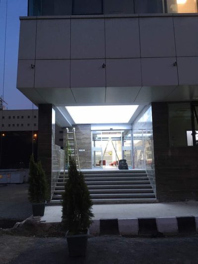 یکی از دغدغه های کارفرمای پروژه استفاده از محصول آنتی باکتریال جهت استفاده در محیط بهداشتی بیمارستان بوده که استفاده از متریال مناسب در دستور کار قرار گرفت، شرکت توسعه افراز هوراد در سال 1396 اجرای سقف های کشسان ترنسپرنت به همراه سیستم نورپردازی وروردی، لابی و سرویس های بهداشتی ساختمان جمعأ به مساحت 450 مترمربع را به انجام رسانده است.