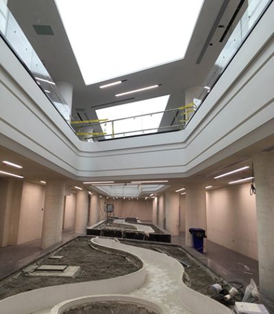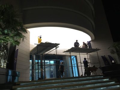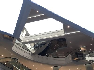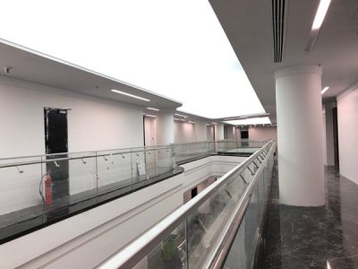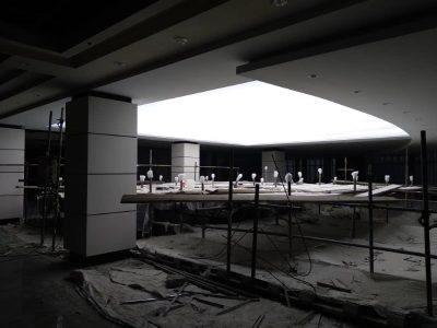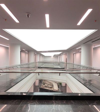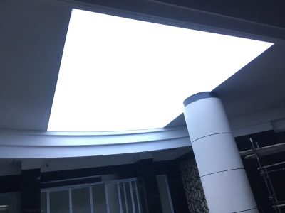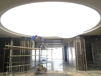 1- اجرای سقف های کشسان ترنسپرنت ورودی های مجتمع و طبقات به همراه سیستم نورپردازی به مساحت 1370 مترمربع