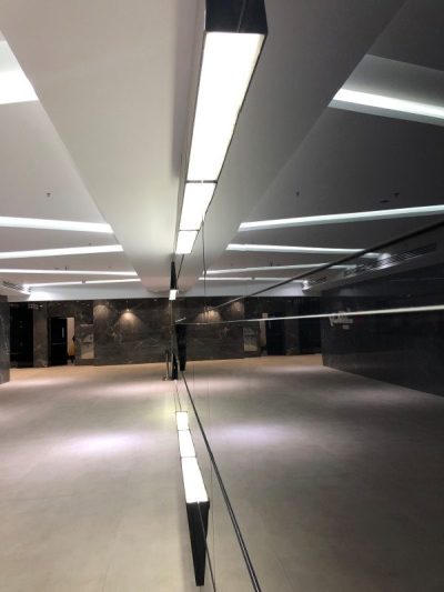 7- اجرای نورپردازی linear lighting در فضای زیر کانویرها در طبقات پارکینگ