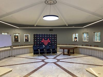 این پروژه در شهرک صنعتی رباط کریم واقع شده است. پلان سالن کنفرانس به صورت دایره به قطر 14 متر می باشد که چیدمان صندلی و میزها به صورت دایروی و محاط داخل فضای سالن قرار دارد.