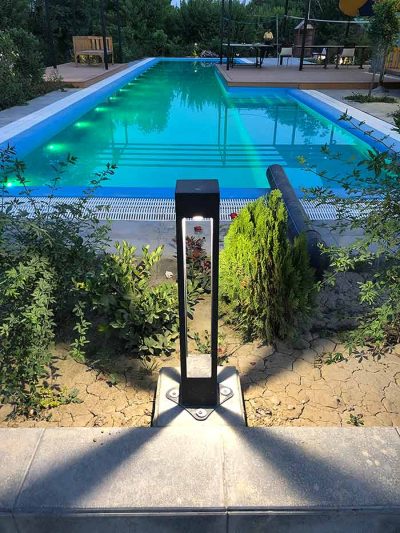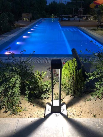 با توجه به مسیر حرکت اسب در پیرامون محوطه ویلا و پیاده روی مجاور طرح نورپردازی محوطه، ایجاد روشنایی در مسیر پیاده رو از طریق چراغ های ایستاده کوتاه با نورپردازی چهار طرفه، و چراغ های دیواری جهت روشن کردن مسیر حرکت اسب بوده است.