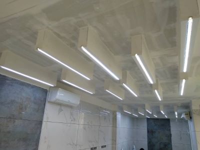 طراحی فضای این واحد درمانی، براساس نورپردازی از طریق باکس های دکوراتیو در محل انتظار بیماران و چراغ های خطی یک سانتی، در محل یونیت های دندانپزشکی انجام گردیده است.