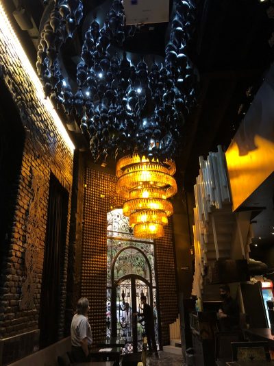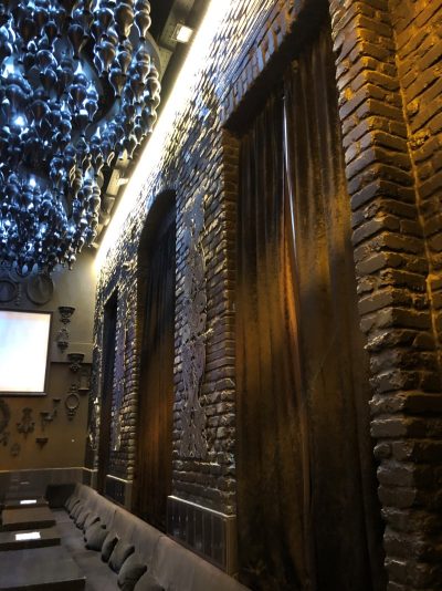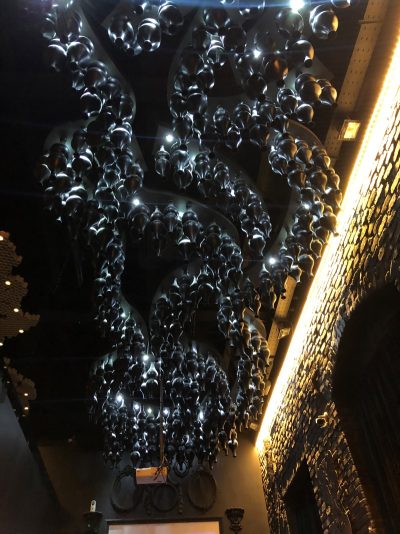 در این راستا جهت روشنایی دیوار آجری از نورپردازی با استفاده از وال واشرهای مخصوص فضای داخلی و در قسمت سقف، جهت تابش نور کم به کف و روشن شدن المان های کوزه ای از نورهای نقطه ای با لنز 180 درجه و 15 درجه به صورت ترکیبی و در کنار هم استفاده گردیده است.