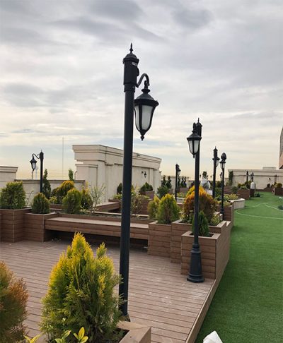 با توجه به متراژ بالای روفگاردن و کاربری شبانه این فضا، طراحی روشنایی بام با تمرکز بر امنیت، خوانایی مسیرها و حس لوکس بودن انجام شد؛ به همین دلیل از چراغهای ایستاده تککلاسیک در ورودی آلاچیقها و چراغهای دیواری برای ایجاد شار نوری یکنواخت استفاده شد. در نهایت، نتیجهی اجرا یک فضای شبانه منظم، چشمنواز و بدون «حفرههای تاریک» است؛ چیزی که در پروژههای سطح بالا، معیار مهمی برای انتخاب شرکت نورپردازی محسوب میشود و دقیقاً همان چیزی است که توسعه افراز را در نگاه کارفرما به عنوان بهترین شرکت نورپردازی مطرح میکند.