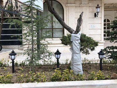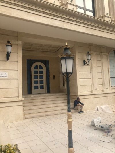 در محوطه بیرونی و حیاط، با توجه به زبان طراحی کلاسیک، چراغهای دایکست با مدلهای «امپراطوری» برای ورودی و «لاله» برای فضای حیاط انتخاب و اجرا شد. چیدمان چراغها صرفاً تزئینی نبود؛ جانمایی بر اساس مسیرهای تردد و محل قرارگیری گیاهان انجام شد تا نور مزاحم پوشش گیاهی نشود و در عین حال، روشنایی محیط بدون لکههای تاریک یا نقاط بیشازحد روشن تأمین گردد.