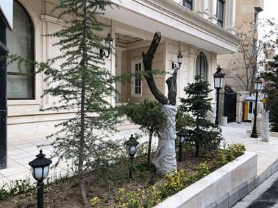 در قسمت محوطه بیرونی و حیاط پروژه استفاده از چراغ های کلاسیک دایکست شده با مدل های امپراطوری برای ورودی و مدل لاله برای حیاط طراحی و اجرا شده است.