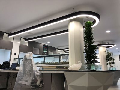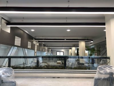 راهروی منتج به اتاق مدیریت با استفاده از چراغ های خطی روکار با عرض 5/4 سانتی متر و به صورت لاین های موازی با کلوین رنگ 4500 تولید و اجرا گردید.