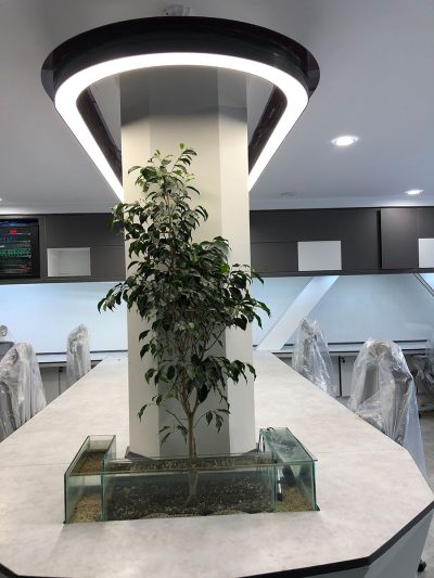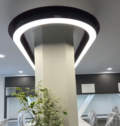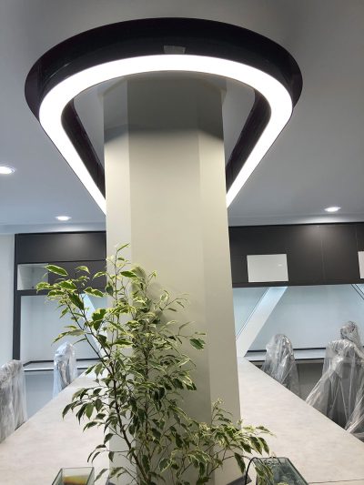 همانطور که از طرح اولیه و کار اجرا شده مشاهده مینمایید هدف اصلی عبور لاین نوری از دو طرف ستون واقع در پلان معماری و روشنایی یکپارچه و بدون قطع میزها و راهرو میباشد.