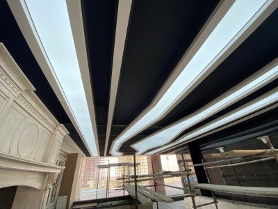 شرکت توسعه افراز هوراد در این پروژه ، طراحی سیستم روشنایی زیر سقف های کشسان و اجرای سقف های استرچ متال به طول 180متر و با عرض های نامساوی را بعهده داشته است.