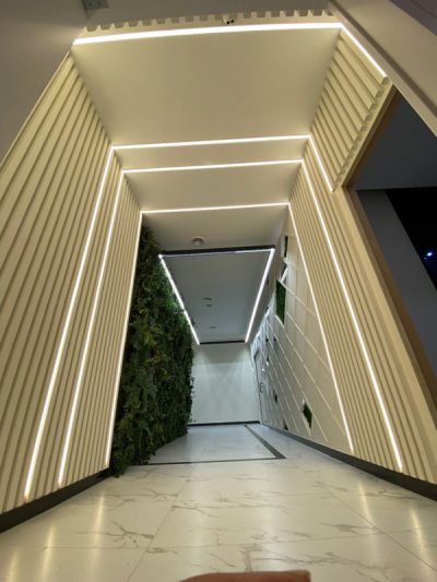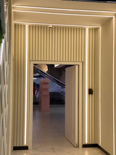 طراحی و اجرای نورپردازی هوشمند RGB لوورهای دیواره VOID به همراه لایت باکس های باریسول از دیگر خدمات نورپردازی ارائه شده این شرکت در مجموعه فاخر OPALSHE می باشد.