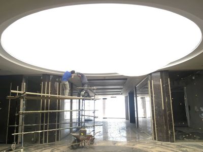 در این روش، از سقف کشسان به عنوان یک سقف کاذب برای ایجاد طرحهای نوری متنوع و جذاب استفاده شد.