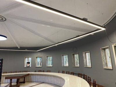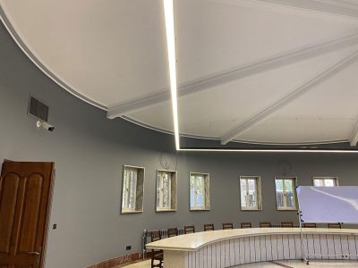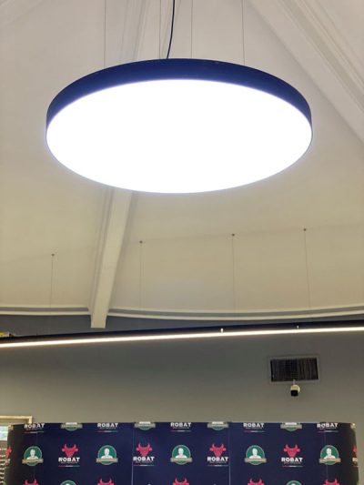 نکته مهم و کلیدی این اجرا درتکنیک استفاده نصب دیفیوزر یک تکه و بدون درز در سرتاسر چراغ با یالهای 9 متری می باشد که باعث زیبایی دوچندان چراغ با طول زیاد شده است.