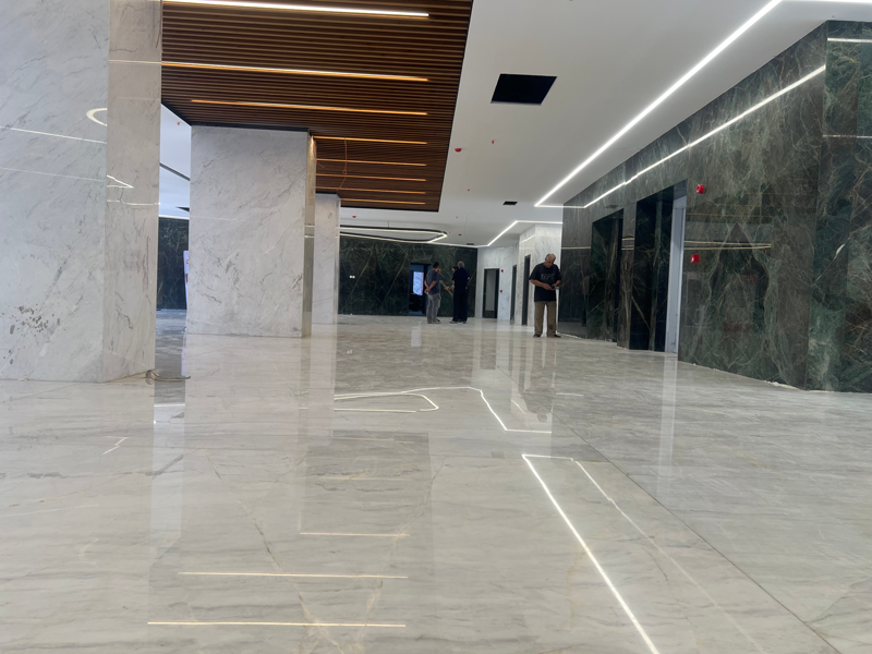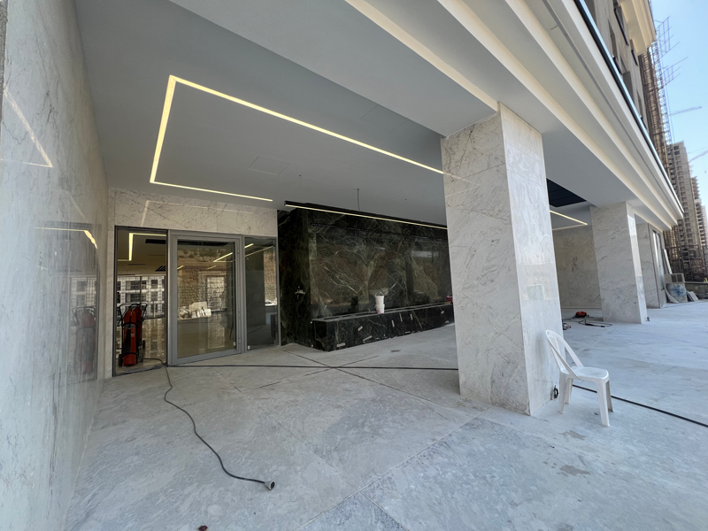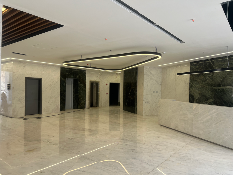 در قسمت لابی آسانسورها از چراغ خطی توکار بین لوورها در قسمت سقف و دیوار بنا به فرم و جانمایی لوورها و ایجاد شار نوری مورد نیاز طراحی و اجرا گردیده است.