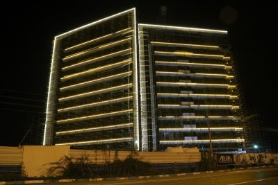 هدف اصلی از طراحی نورپردازی نما در این پروژه، تأکید بر خطوط افقی تراز طبقات و قاب کلی ساختمان بوده است؛ رویکردی که به نمایش صحیح معماری منظر و حجم کلی بنا در شب کمک میکند. با توجه به موقعیت پروژه و دید ۳۶۰ درجه آن در بافت شهری جزیره کیش، نورپردازی یکنواخت و کنترلشده نقش بسیار مهمی در هویت بصری ساختمان ایفا میکند.
