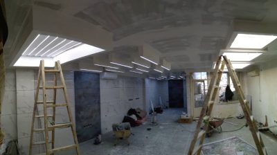 طراحی فضای این واحد درمانی، براساس نورپردازی از طریق باکس های دکوراتیو در محل انتظار بیماران و چراغ های خطی یک سانتی، در محل یونیت های دندانپزشکی انجام گردیده است.
