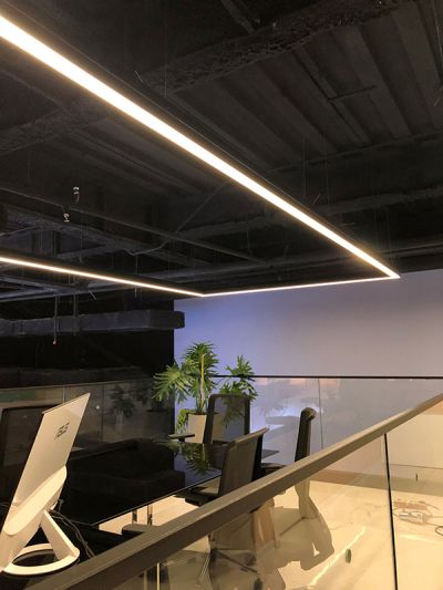 در فضای میان طبقه و مدیریت مجموعه با توجه به محدودیت ارتفاع و سقف اکسپوز فضای مدیریت از چراغ خطی تیپ LA-01 به صورت مستطیلی و خطی با کلوین رنگ 4000 طرح و اجرا شده است.