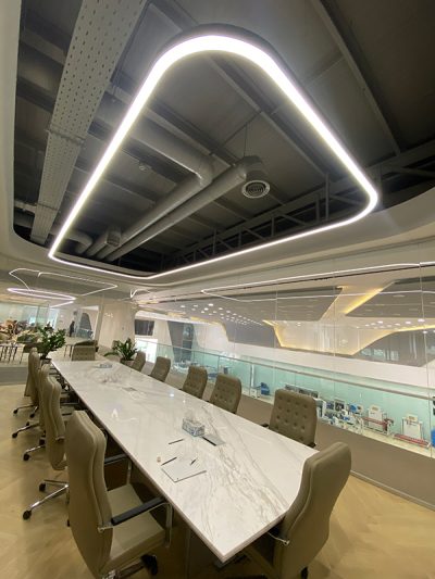 طراحی منحصر بفرد چراغ خطی منحنی این امکان را به معماران پروژه خواهد داد که بر اساس چیدمان و فرم فضا، نورپردازی دلخواه خطی قوسی را در فضا داشته باشند و یا حتی کانسپت معماری داخلی محیط را تکمیل نمایند. یکی از دغدغه های موجود در طراحی داخلی عدم وجود آلترناتیوهای نورپردازی جهت ارتباط درست با فضا می باشد. شرکت توسعه افراز هوراد در راستای تحقق این هدف اقدام به تولید این نوع چراغ با در نظر گرفتن جزئیات استاندارد براساس طرح شرکت Tensocielo ایتالیا نموده است. پروفیل های چراغ و نوع دیفیوزر این امکان را فراهم می سازد که چراغ با هر قوس و با عرض های متغیر تولید و اجرا گردد.